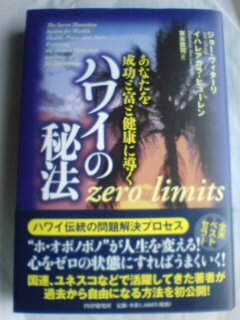本のタイトルは「ハワイの秘法 zero limits」。ベストセラー作家ジョー・ヴィターリとヒューレン博士の共著となっています。内容はヴィターリ氏がヒューレン博士と出会ってから、その秘法を学び実践してきた今日までの過程が体験談としてまとめられています。