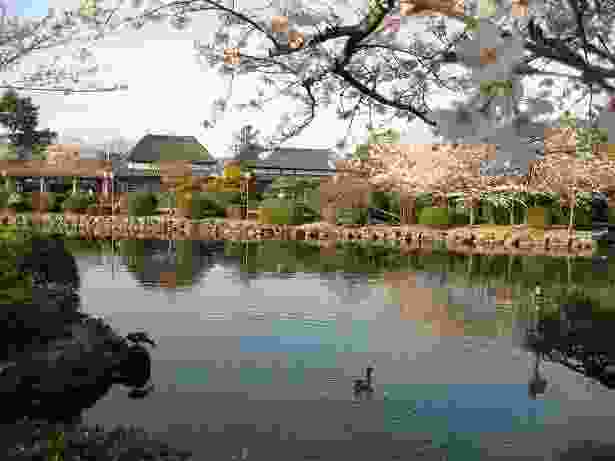 近くの多布施川から清流を引いて池や川をめぐらし、築山には豊富な樹木が植えられ、四季折々の展望が楽しめる日本庭園となっています。